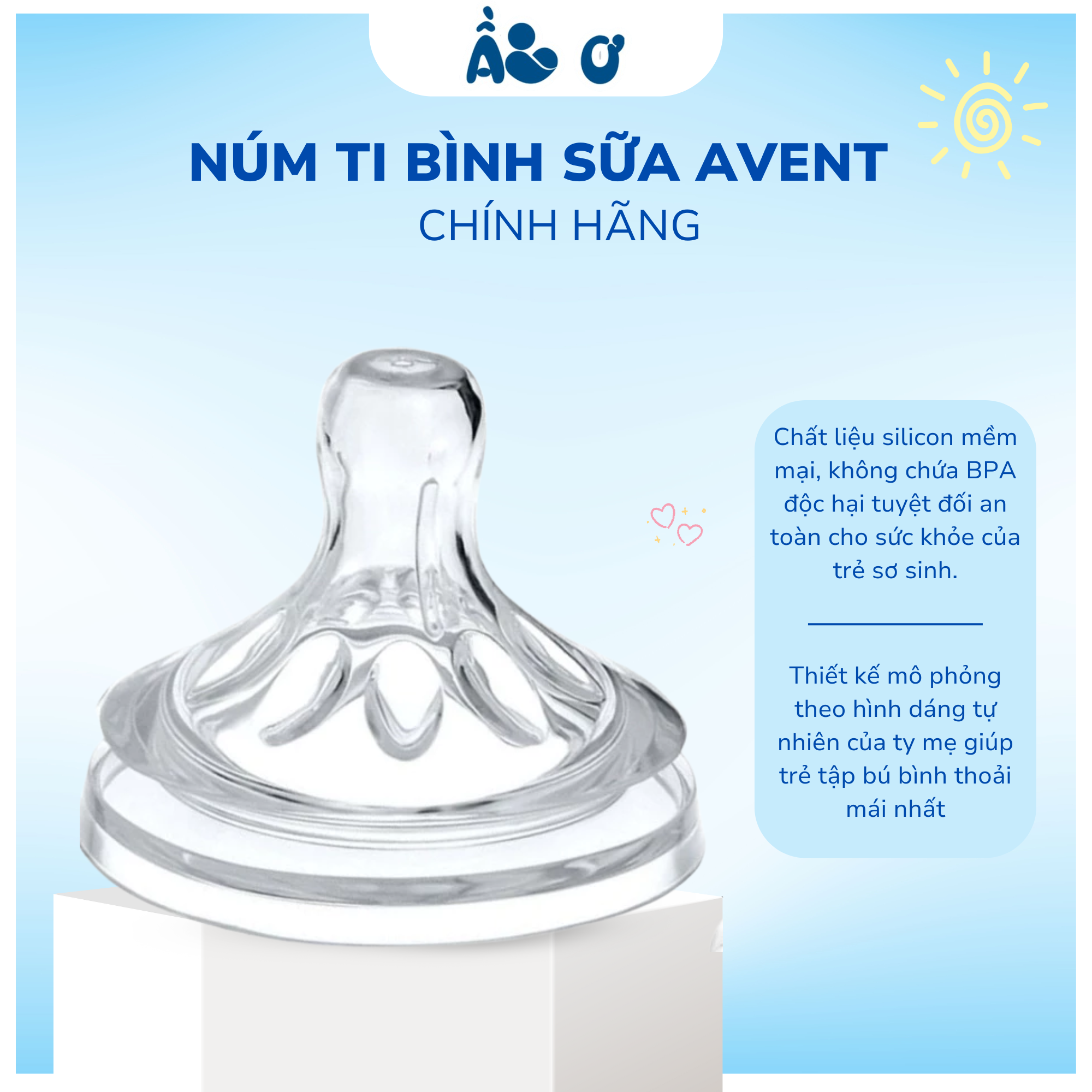 – Làm từ silicone cao cấp, mềm mại và không chứa BPA, đảm bảo an toàn cho trẻ sơ sinh.