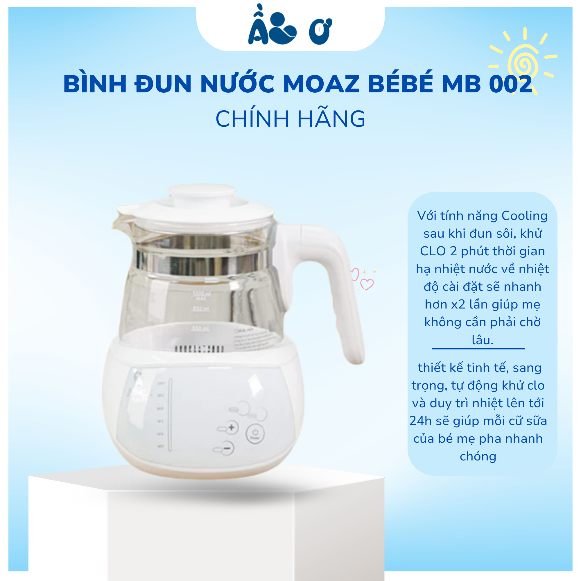 Với nhiều gia đình có trẻ nhỏ, bình đun nước pha sữa là thiết bị không thể thiếu cho mỗi lần pha sữa cho bé tại nhà. Bình đun nước thông minh Moaz BéBé MB – 002 có chức năng giữ nhiệt liên tục lên đến 24h giúp cho quá trình pha sữa được rút gọn. Ngoài ra, chế độ khử Clo thông minh trong vòng 2 phút giúp nước được tinh khiết, bảo vệ sức khỏe cho cả gia đình.