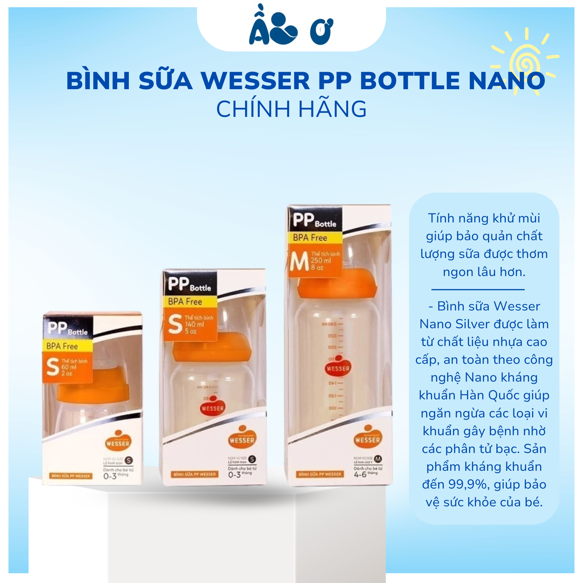 🍼 BÌNH SỮA WESSER NANO SILVER | CHỐNG ĐẦY HƠI – KHÁNG KHUẨN 99.9%