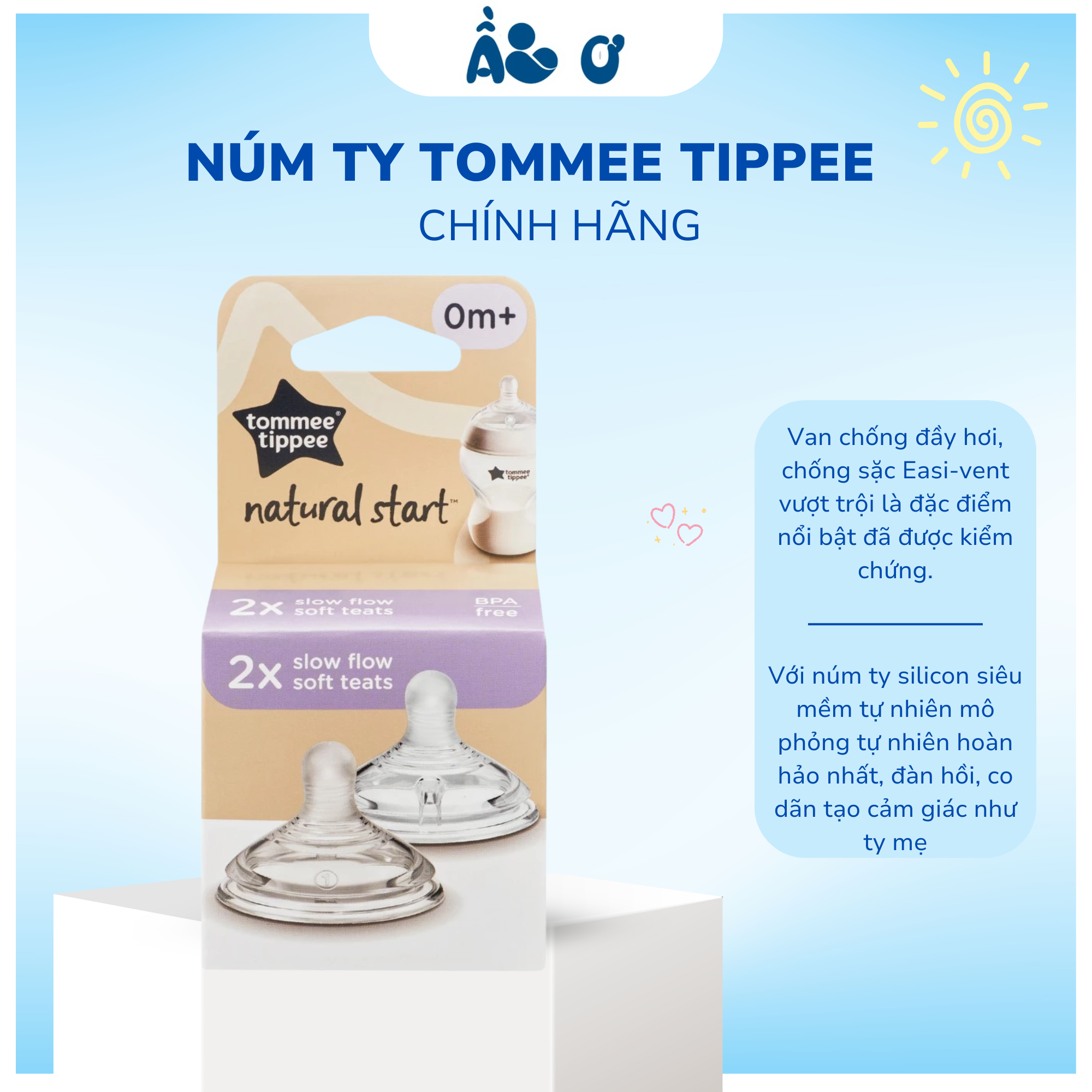 🌷☀️ Núm ty silicon siêu mềm tự nhiên cho bé Tommee Tippee Natural Start (Vỉ đôi, tách lẻ)