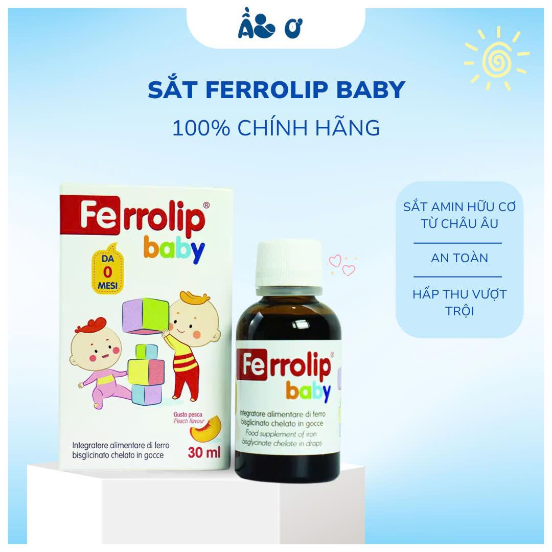 Ferrolip BaBy: Sắt Amin chuẩn châu Âu cho bé. Sắt có sinh khả dụng cao, an toàn, thơm ngon dễ uống. Ferrolip Baby là lựa chọn hàng đầu giúp ngăn ngừa thiếu máu do thiếu sắt ở trẻ.