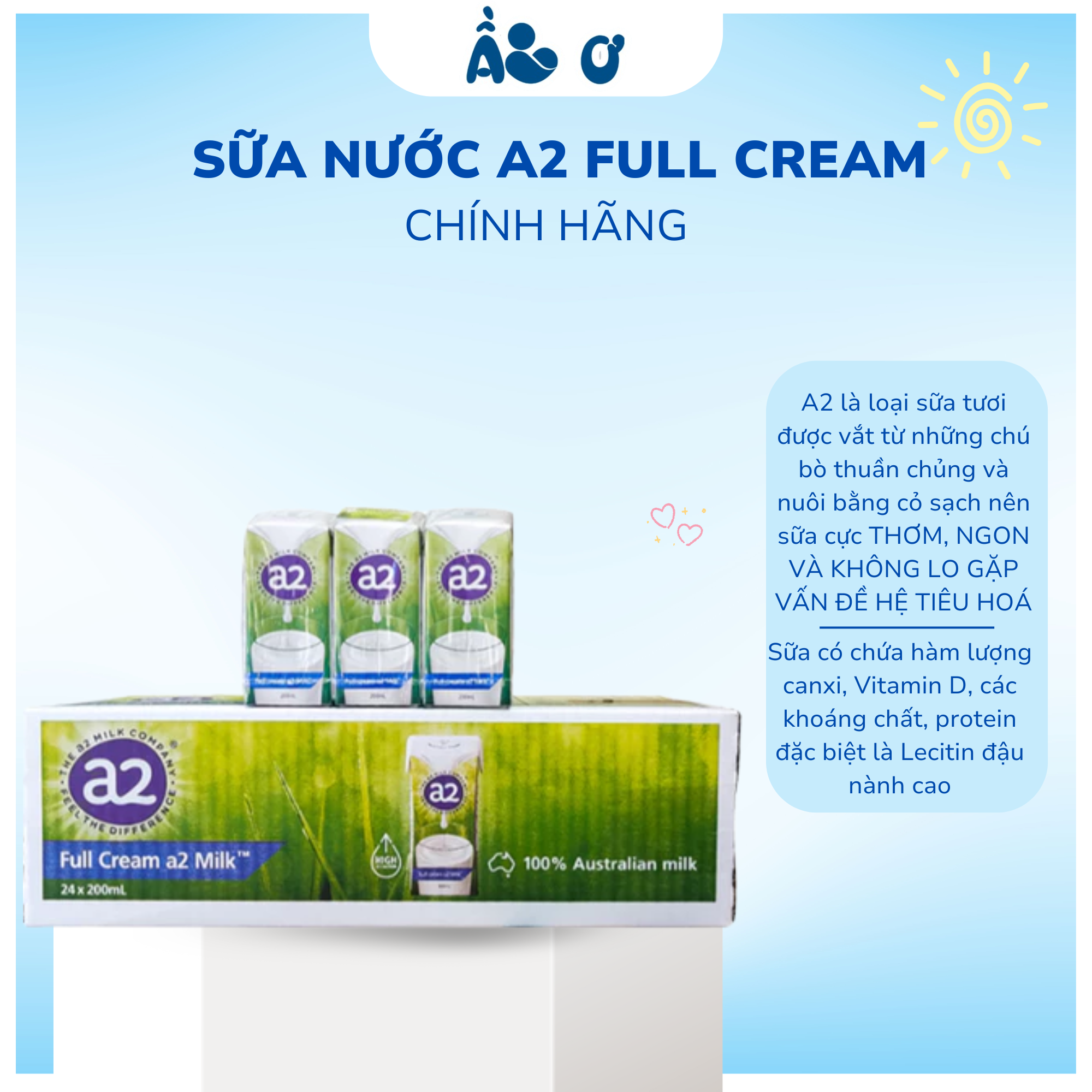 Sữa Tươi A2 Nguyên Kem Dạng Hộp Úc