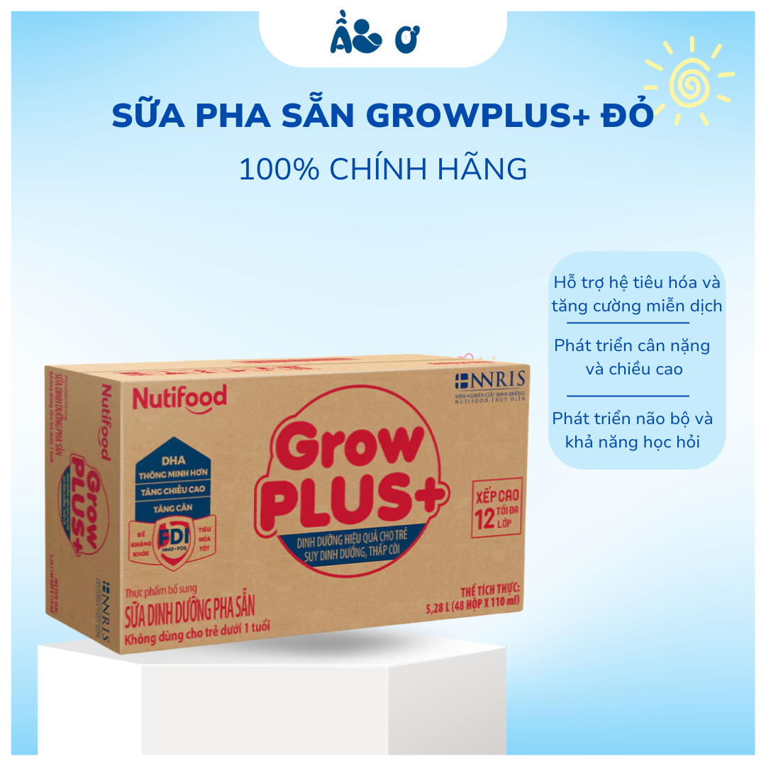 Thùng 48 Hộp Sữa Pha Sẵn Nutifood GrowPLUS+ Đỏ – Tăng Cân, Phát Triển Cho Bé Trên 1 Tuổi